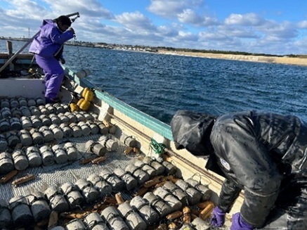 - 海藻の種苗投入:マコンブの種糸(100m)を購入し、15~20cmに切ったものを2本一組として浮子と沈子を付けて投入している。