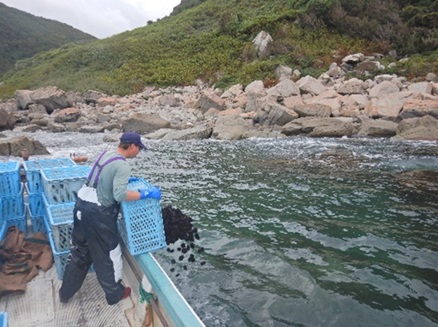 - ウニの密度管理:磯焼け域のキタムラサキウニを対象にスクーバ潜水によって採捕し、海藻が繁茂する海域に移植している。