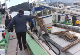 海岸清掃:海上に流れ着いた流木、ゴミ等の回収し、処分を行う。