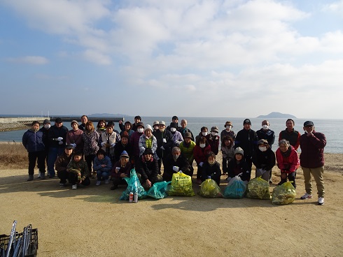 - 桜井海岸および桜井漁港の沖合約4kmに位置する平市島の海岸清掃を実施し、プラスチックや缶瓶などの人工ゴミの他、流木等の自然ゴミの回収・処分を行っている。