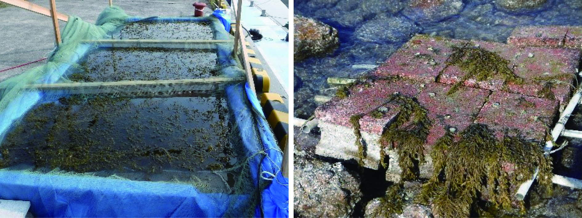 ヒジキの種苗生産によりヒジキプレートを作成し、活動海域に設置している。 - アマモの移植および播種