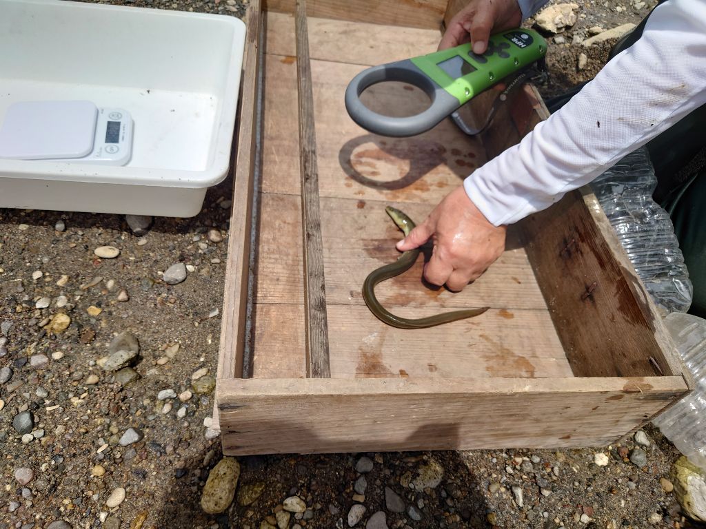 モニタリング時に読み込むウナギに埋め込んだピットタグには一つ一つユニークなIDが記録されており、その個体に特殊な探知機をかざすことで、個体識別が可能となっている。これにより、ウナギの生息域(分布)やその環境の調査を行うことができ、例えば漁協の行うクロコウナギの義務放流に適した場所の検討に活用することができている。