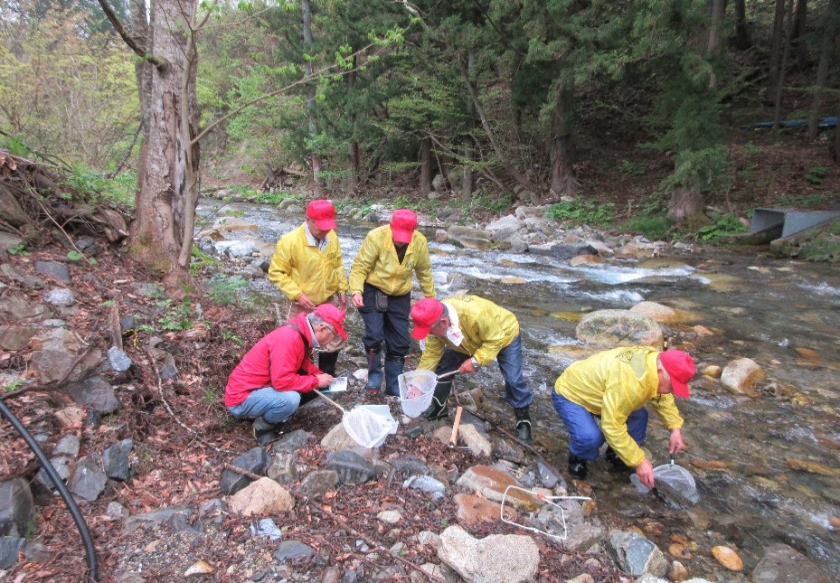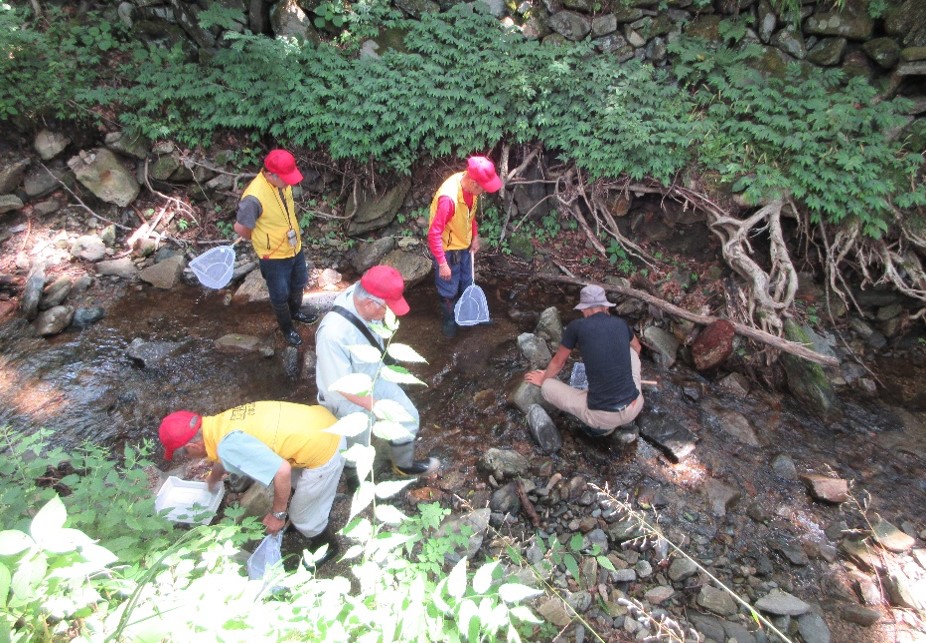 ●現在の活動は、モニタリング調査による水生生物の個体数確認と、河川清掃による水生生物の生息環境整備が主体となっている。